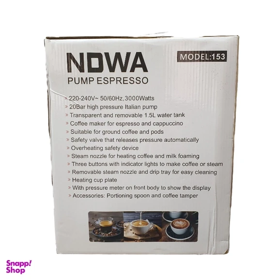 اسپرسوساز NDWA مدل 153 ظرفیت 1.5 لیتر فشار 20 بار توان 3000 وات